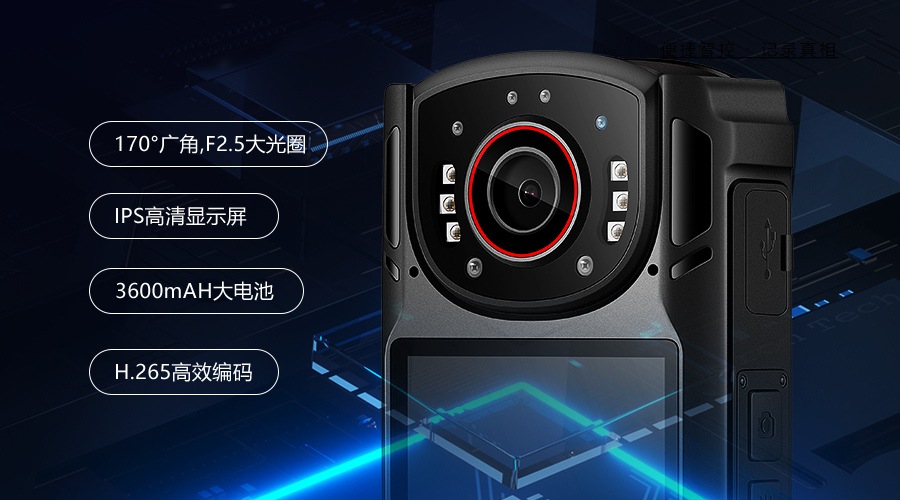 AEE執(zhí)法記錄儀DSJ-K7外觀采用精巧的流線型跑車外觀設(shè)計,帶來年輕、運動的視覺感觀; 170°廣角攝像頭保證隨時隨地提供細(xì)節(jié)畫面錄制;IPS高清顯示屏前置,高端